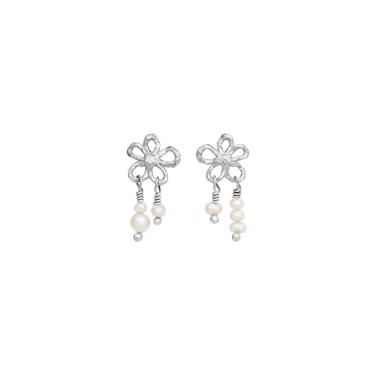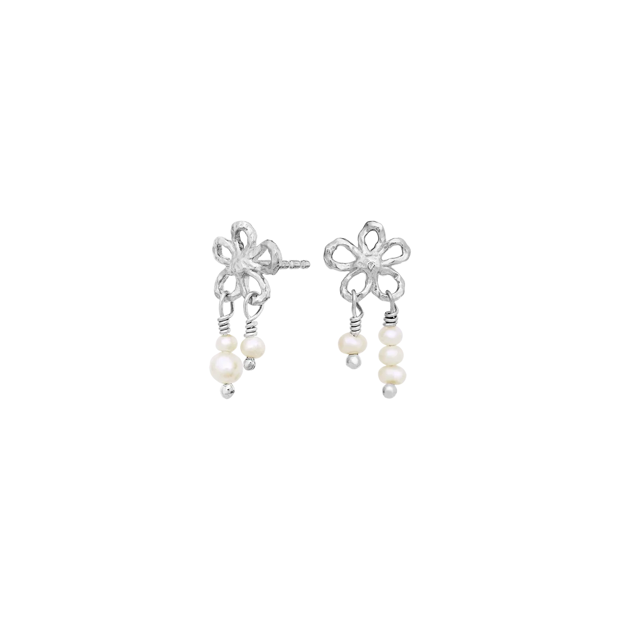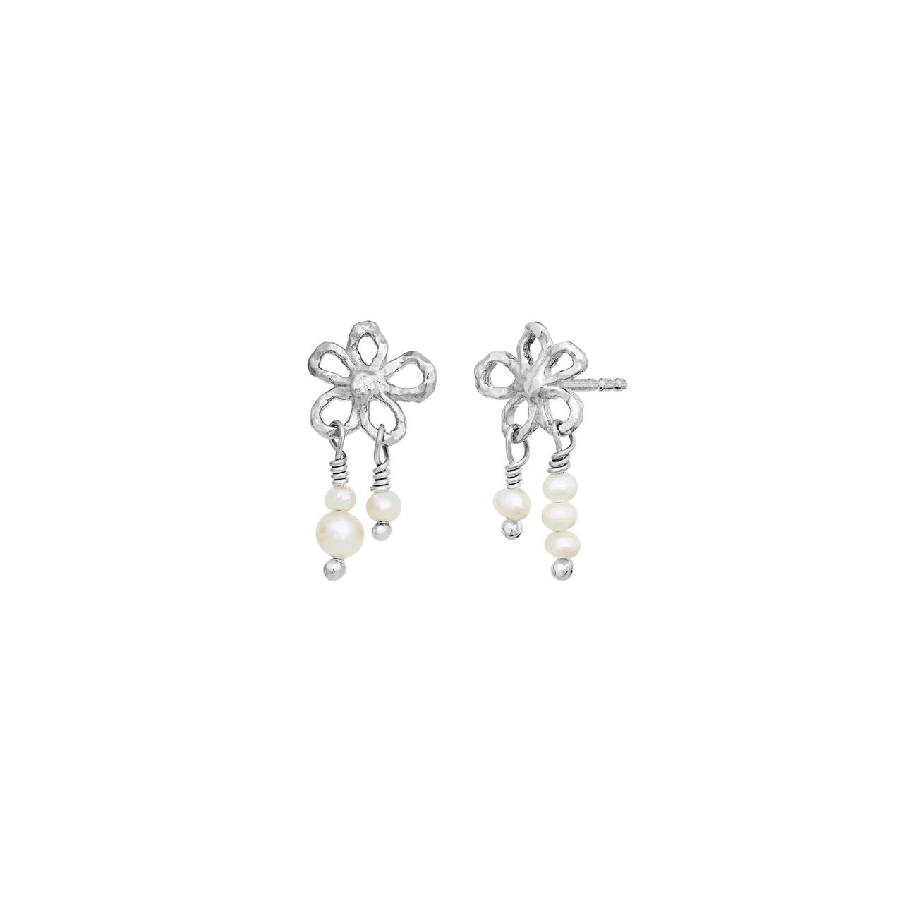Maanesten Nicola Øreringe i sølv er en fin og feminin hyldest til ungdommelig nostalgi og de lyse sommerminder, vi gemmer i hjertet. Den lille blomst kombineret med en blød ferskvandsperle skaber et let og romantisk udtryk, der føles naturligt og elegant.