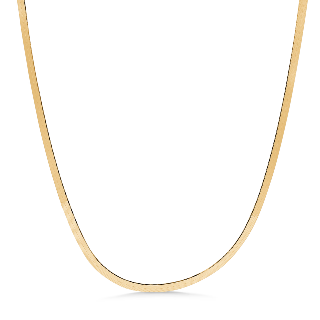 Cobra Small halskæden fra Studio Z er en elegant og tidløs halskæde med en smuk sildebensstruktur. Den flade, fleksible kæde lægger sig blødt mod huden og skaber en glansfuld overflade, der giver et eksklusivt og stilrent udtryk.