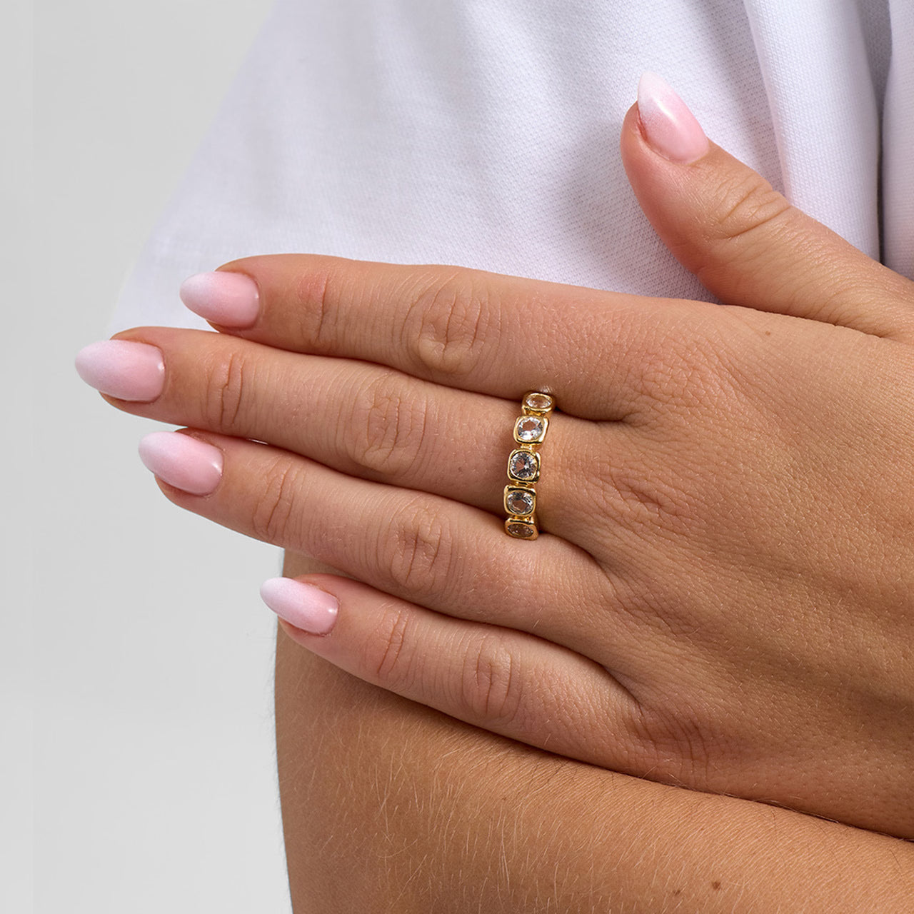 Ringen er håndlavet i ægte 925 sterlingsølv med 18 karat forgyldning, hvilket giver et eksklusivt og tidløst look. Perfekt til både hverdag og fest – brug den alene eller stack den med andre ringe for et personligt og stilfuldt udtryk.