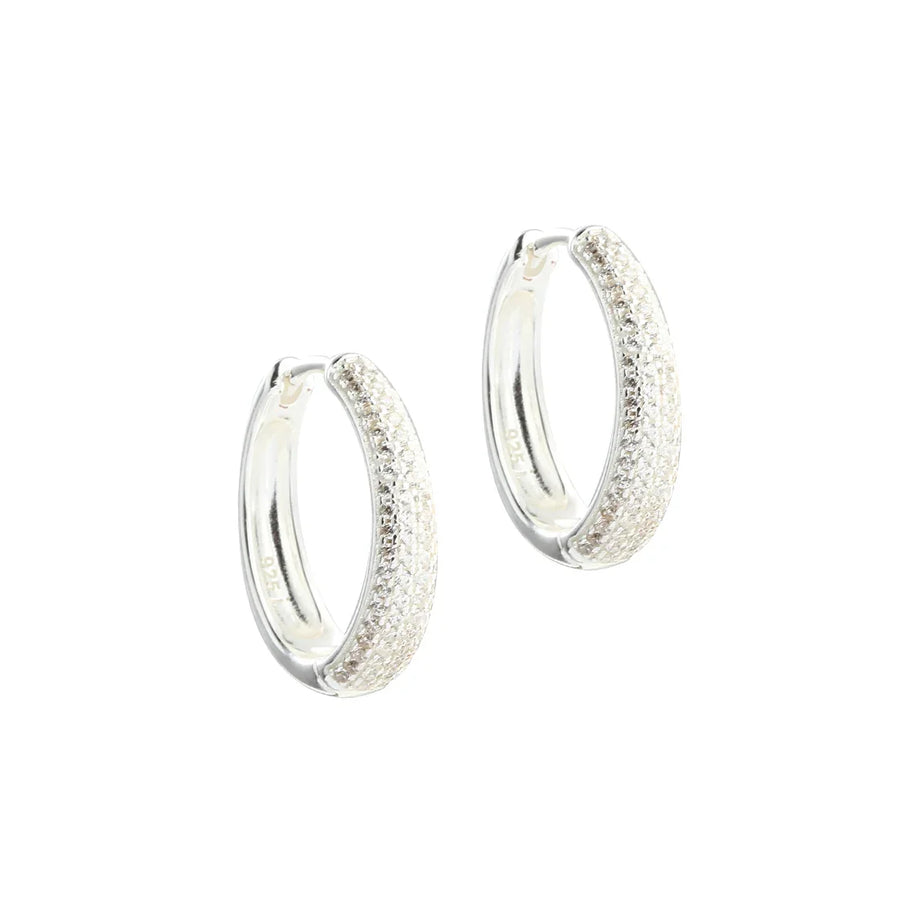 Fuldend dit look med disse glamourøse Darling Emma Large creoler fra Aqua Dulce. Udført i blankt sterlingsølv og pavérsatte med små, klare zirkonia-sten, der glitrer smukt i lyset. Den markante størrelse gør dem til et elegant statement, perfekt til både hverdag og fest.