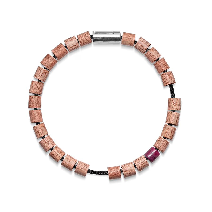Lad historien om Cape Hatteras Lighthouse inspirere dit look med dette unikke Black Sun armbånd. Armbåndet kombinerer ægte rubinperle og lys drivtømmer, bundet på sort nylon, og afsluttes med en elegant sølvlås.