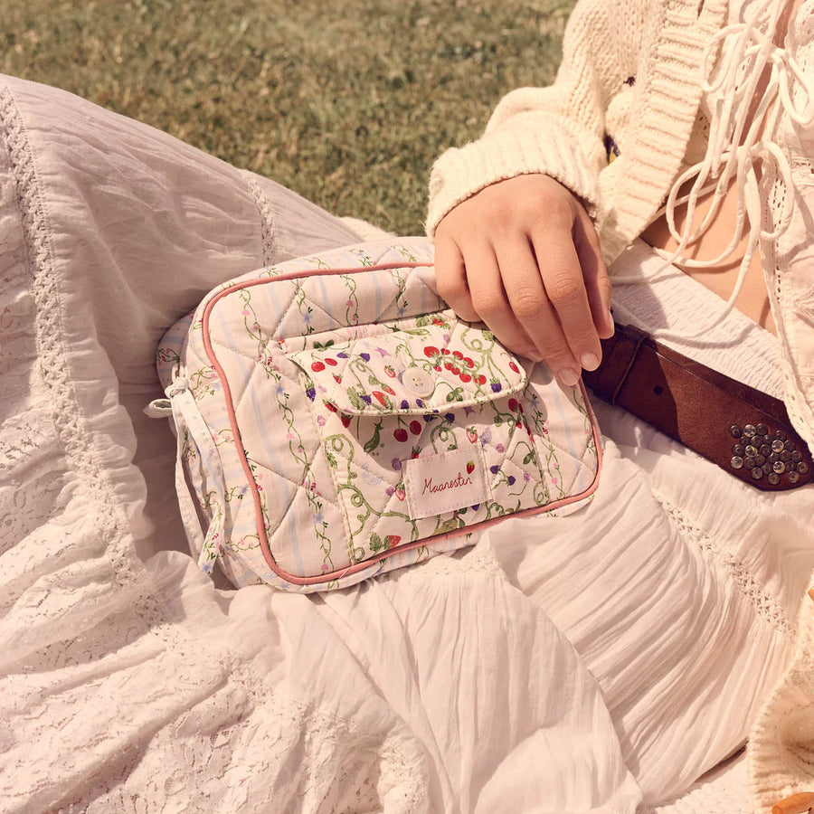 Tasken kan bruges som lille clutch, kosmetikpung, toilettaske eller til opbevaring i din større taske. Den er perfekt til makeup, smykker og andre små essentials – både hjemme og på farten. En del af Maanesten SS26 kollektionen, hvor lette farver og sommerlige detaljer er i fokus.