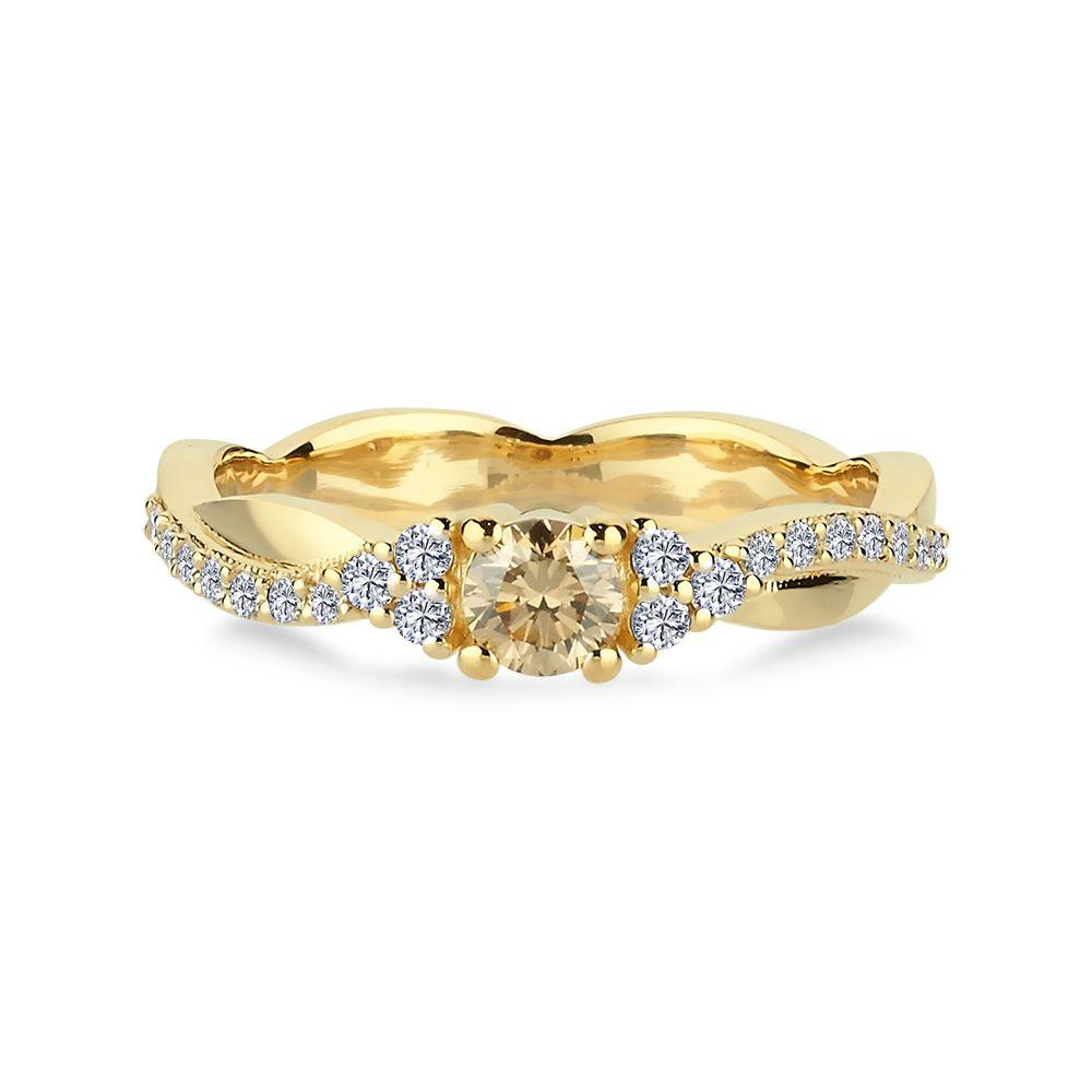 Nuran Champagne Ringen i 14 karat guld er et udsøgt smykke, indfattet med en enestående 0,25 ct champagnefarvet diamant og prydet med 0,16 ct W-si brillanter. Denne ring kombinerer elegance og luksus på en unik måde, og den vil med sikkerhed tilføre en strålende glans til dit look.