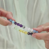 • 8 mm perler: Rosenkvarts, Aquamarine, Ametyst, Citrin & Prehnit