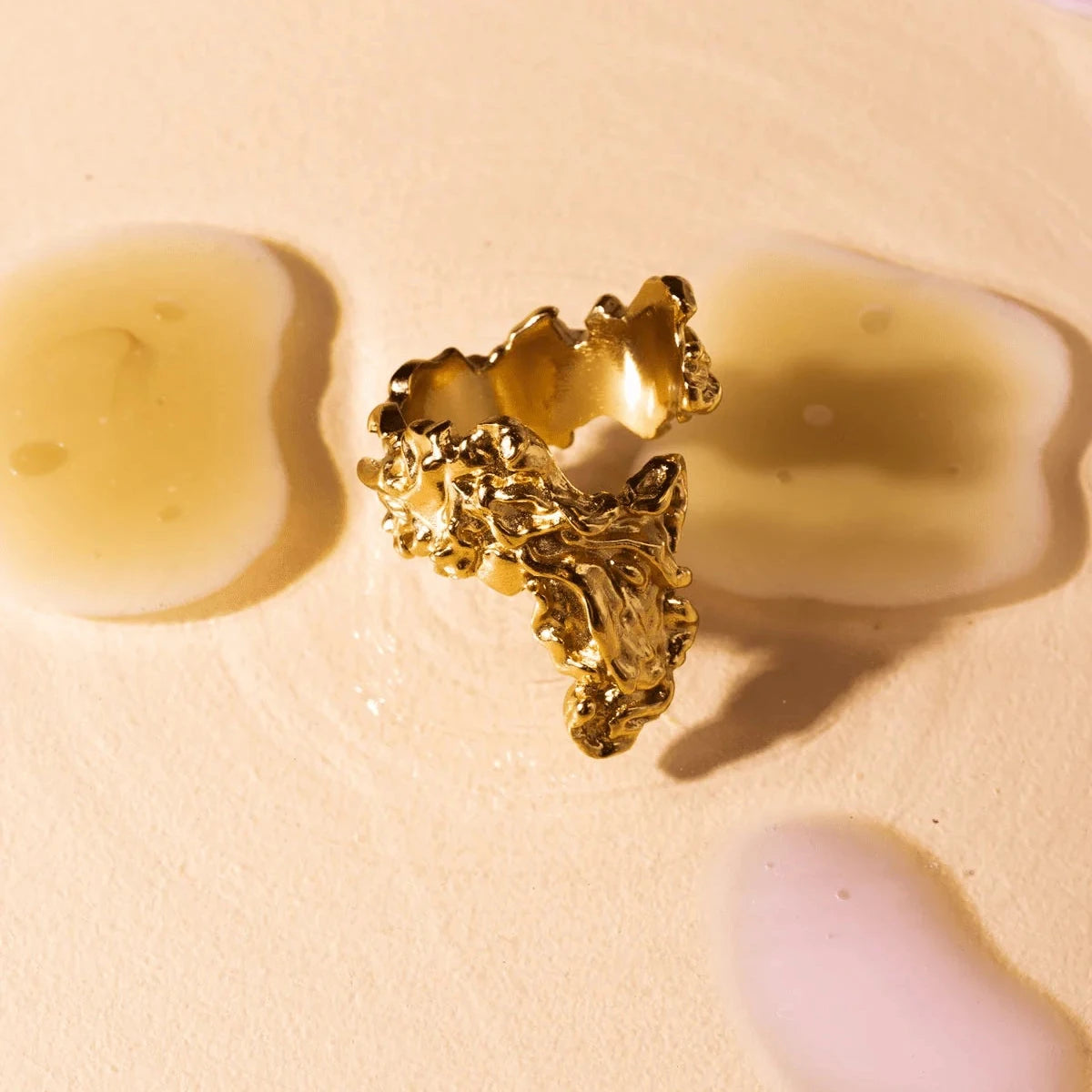 Vincent Archaic Shadow Ring 18kt Forgyldt – Abstrakt Elegance i Flydende Form: