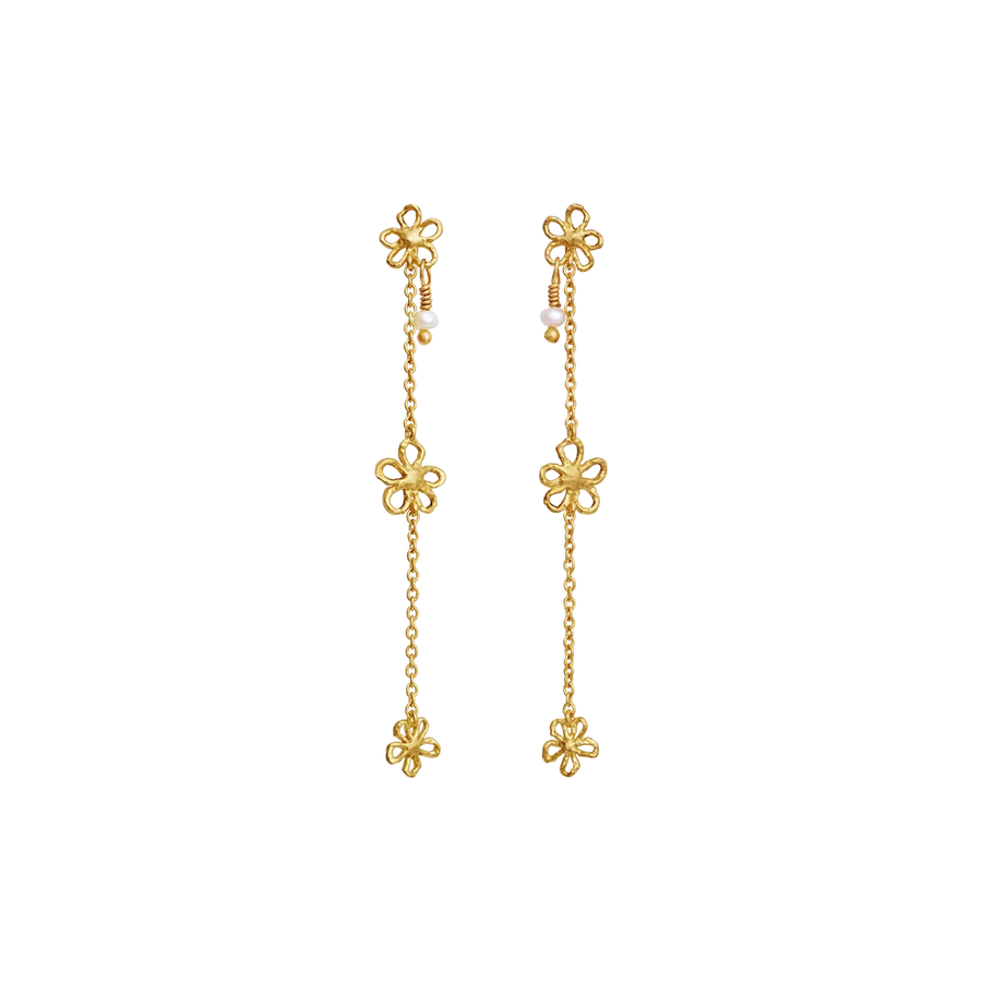 Øreringene er fremstillet i genanvendt sterlingsølv (925) forgyldt med 18 kt. guld og har et let og levende fald, der bevæger sig smukt, når du gør. Perfekte til både hverdag og særlige øjeblikke, hvor du ønsker et romantisk og personligt touch. En del af Maanesten SS26 kollektionen med fokus på nostalgi, natur og sommerstemning.