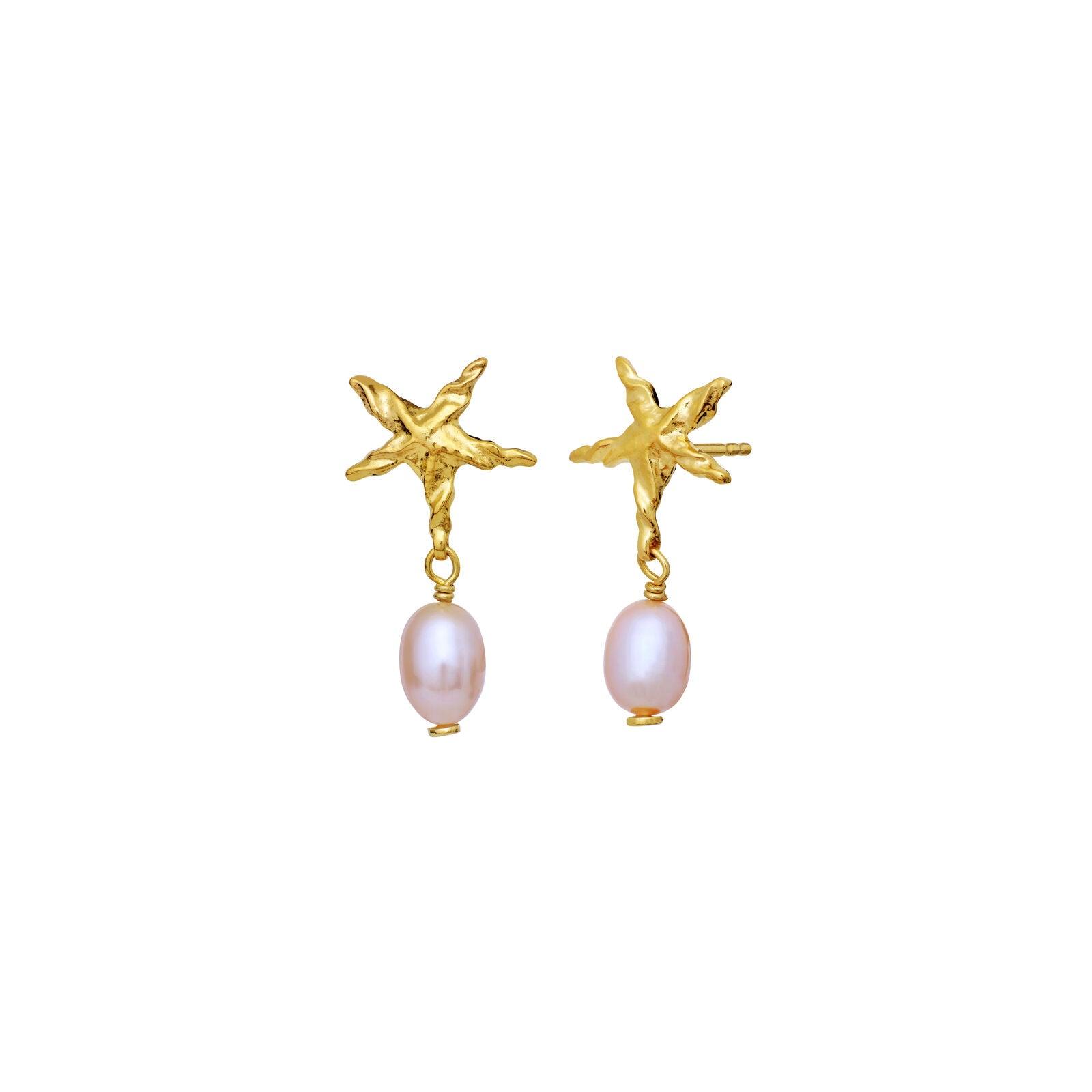 Sandie øreringen præsenterer en elegant søstjerne med en lyserød ferskvandsperle, der symboliserer fornyelse og balance. Søstjernen, hvis den betragtes som et sjæledyr, siges at kunne styrke selvtilliden og bringe revitalisering til bæreren.