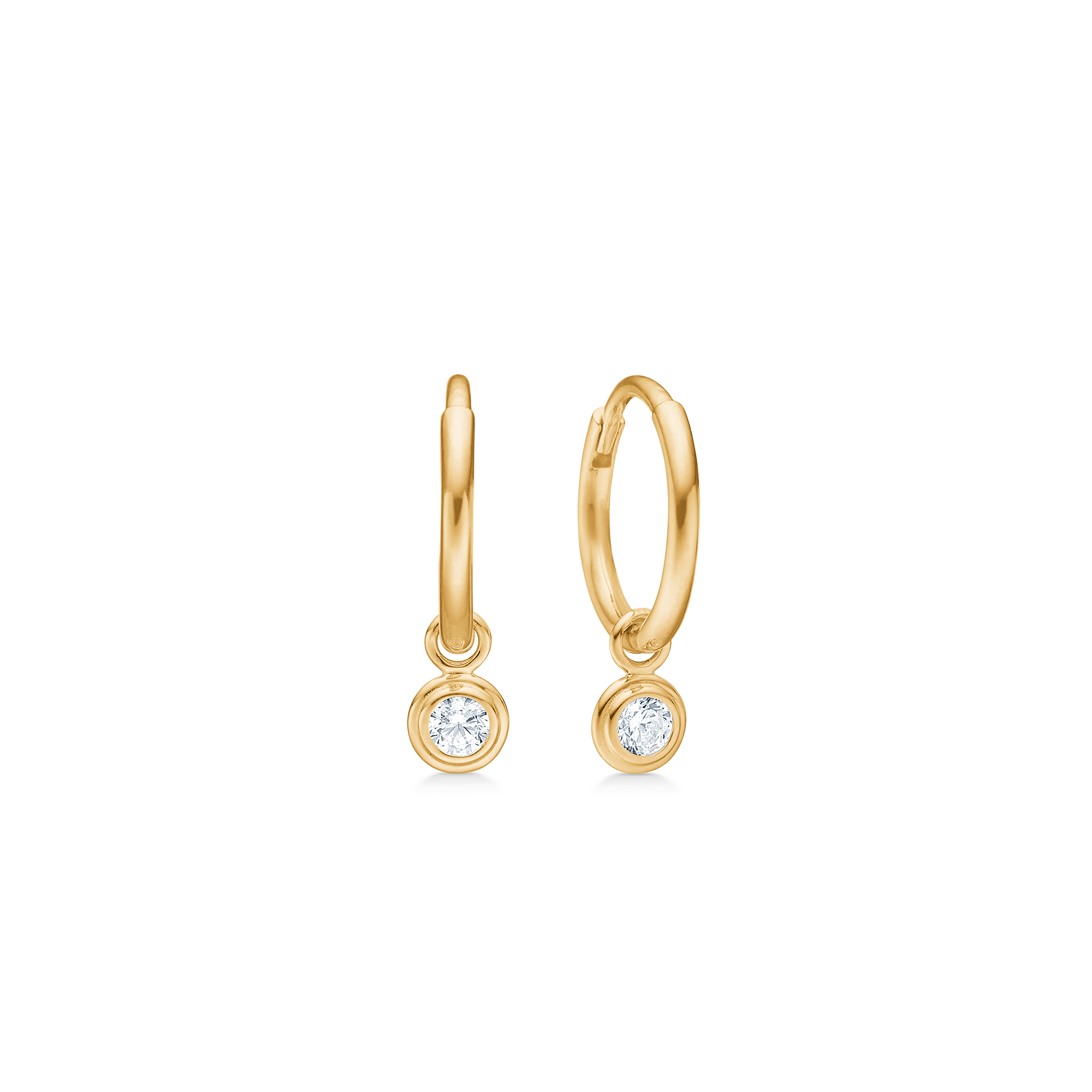 Det varme 8 kt guld giver øreringene en smuk og blød glød, mens zirkoniaen tilfører et diskret, men strålende lys. Designet er enkelt og feminint med fine proportioner, der gør dem nemme at bære og lette at style.