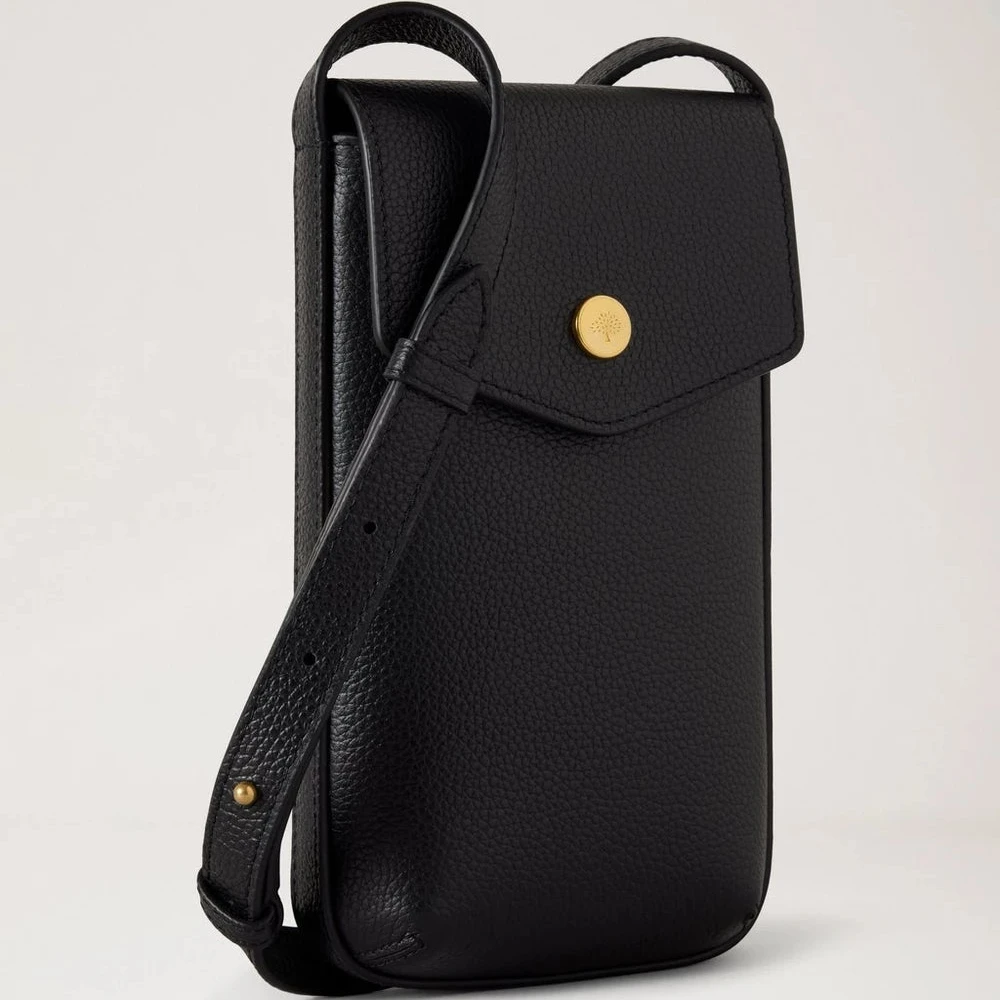 Mulberry Press Stud Phone Pouch – Black Small Classic Grain / Sort Læder Mobilpung: