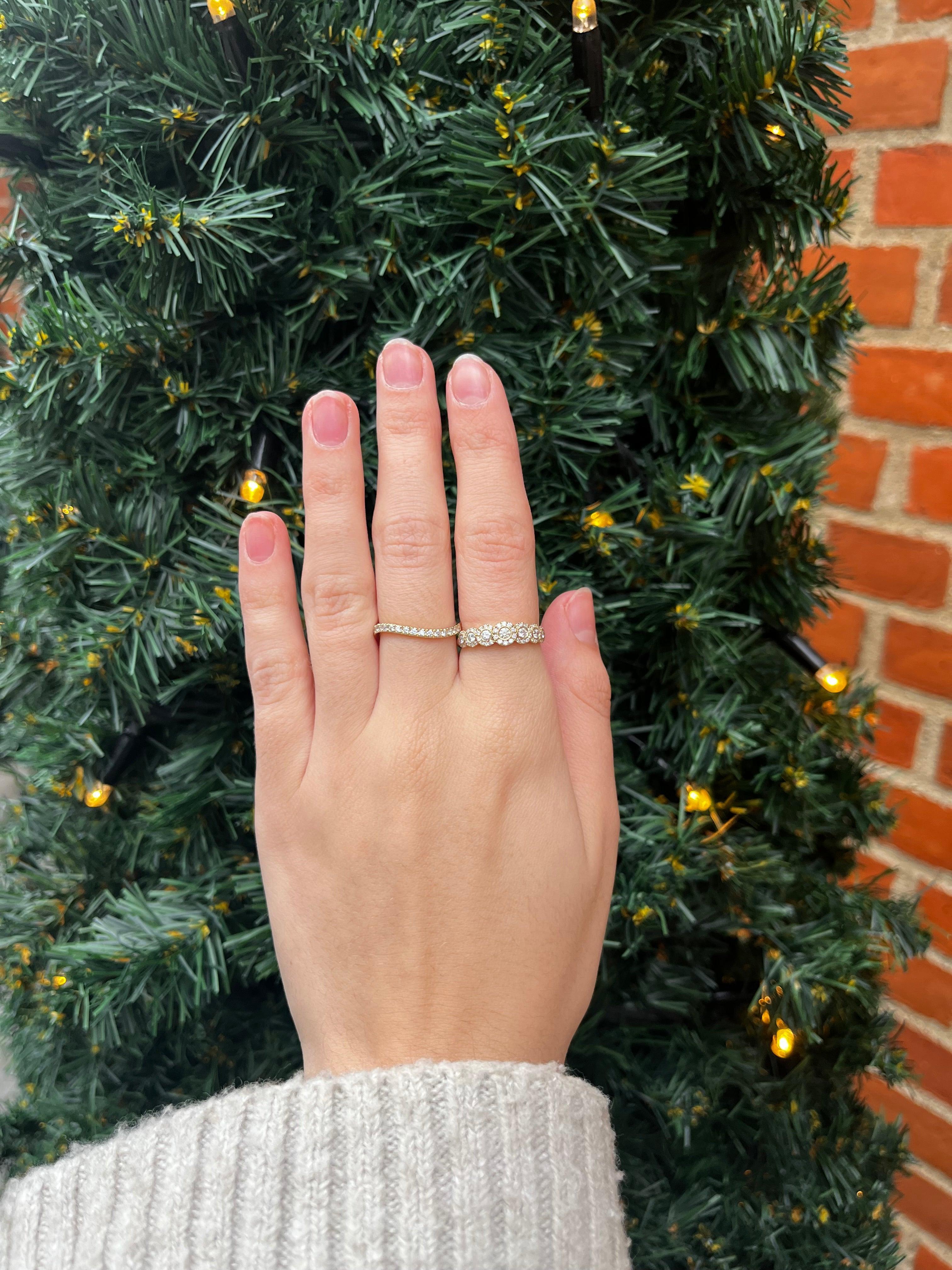 Nuran Duchess ringen er et majestætisk valg, der udstråler elegance og luksus. Denne ring er fremstillet i 14 karat guld og prydet med i alt 0,57 carat W-si brillanter. Den centrale del af ringen prydes af syv større brillanter, der er omkranset af en cirkel af små brillanter, hvilket skaber en strålende effekt og tilføjer dybde til designet. Den detaljerede udformning gør denne ring til et perfekt valg som forlovelsesring, og den vil med sikkerhed imponere din elskede ved særlige anledninger.