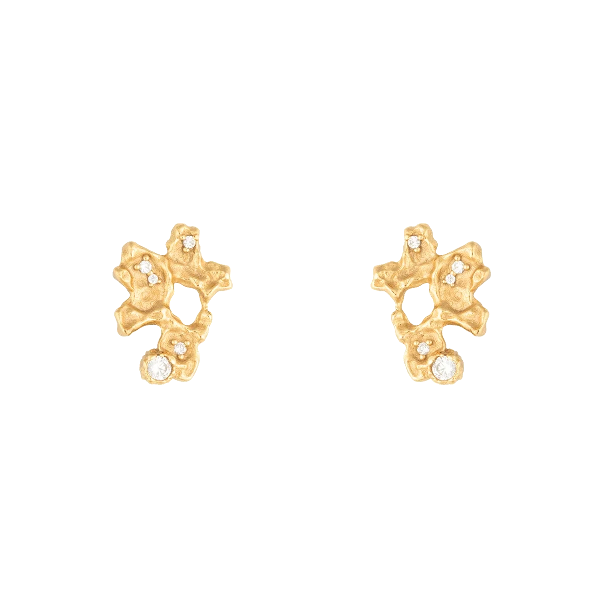 Vincent Ilium Øreringe Forgyldt – Elegante Øreringe med Organiske Linjer og Hvide Krystaller