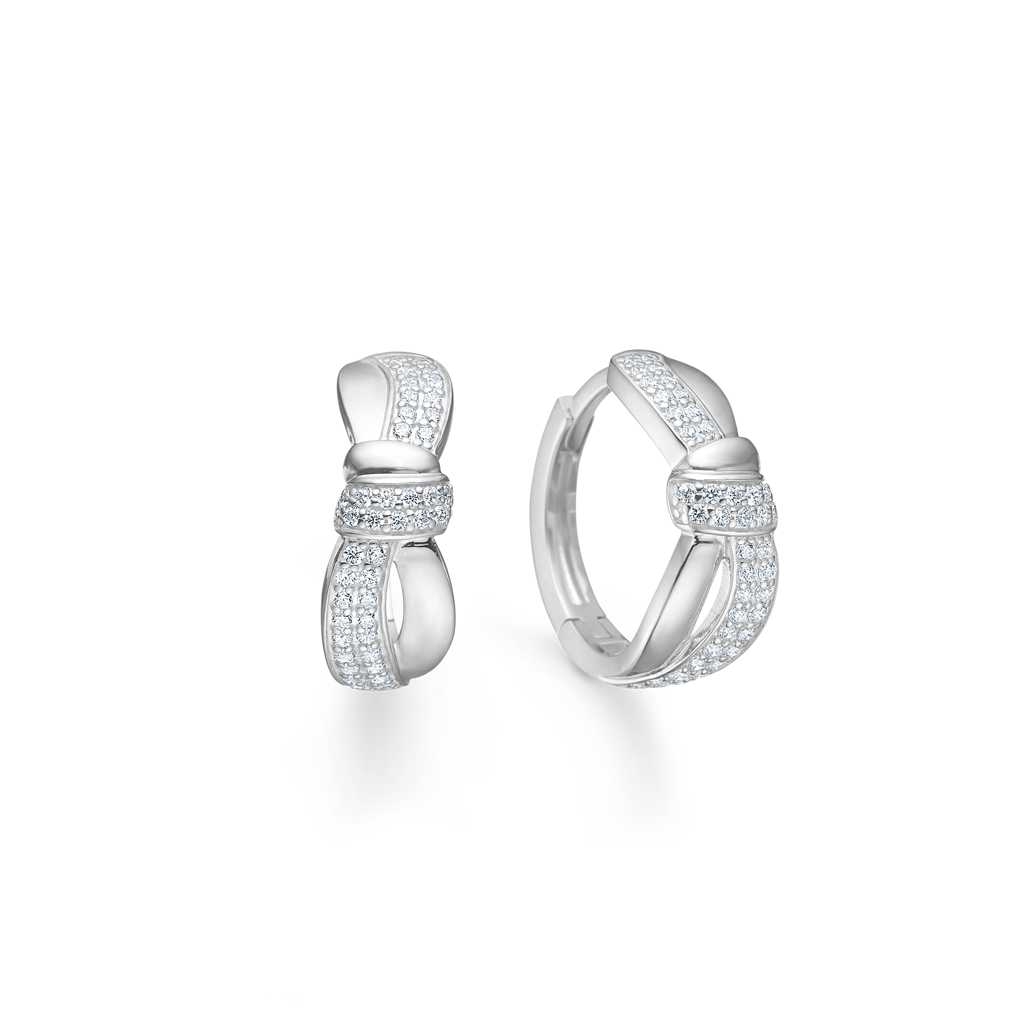 Tilføj et skulpturelt og funklende touch med Darcy øreringene i sterlingsølv. Den elegante knudeform skaber et moderne, grafisk udtryk, mens pavé-sætningen af klare zirkonia reflekterer lyset med en subtil glans.