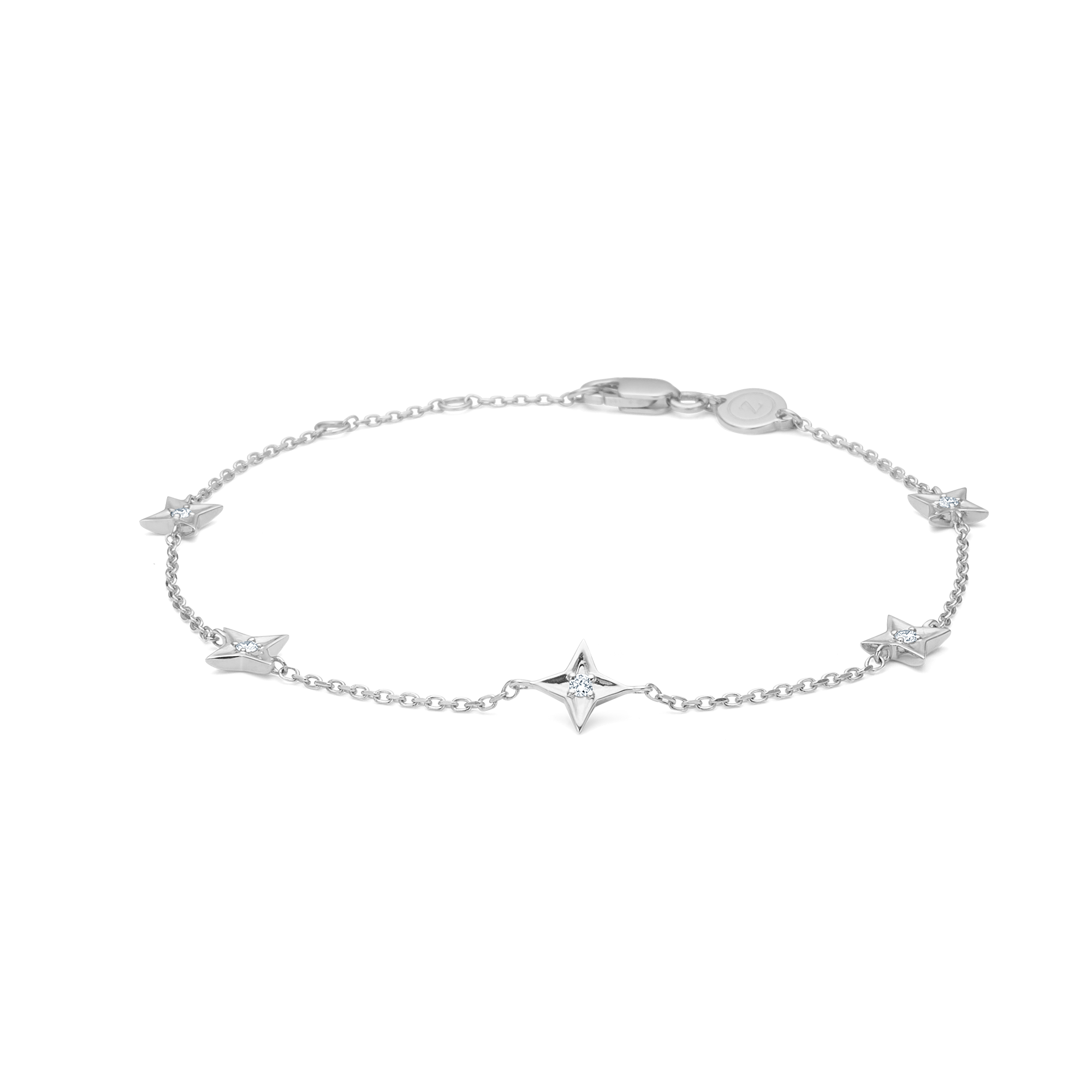 De kurvede stjerner danner en smuk kontrast til den fine ankerkæde, som giver et let og elegant udtryk. Armbåndet måler 16 cm og har en 2 cm forlængerkæde, så du kan tilpasse pasformen efter ønske.