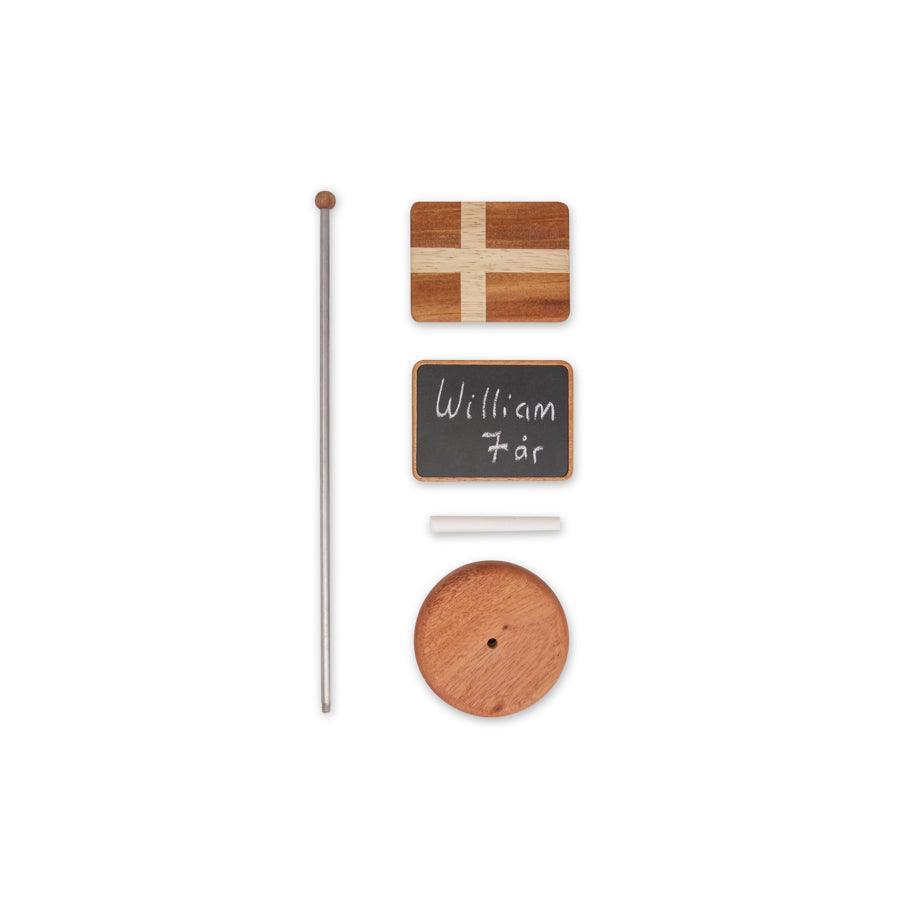 Dette magnetiske samlesæt fra Fablewood består af en flagstang, et flag, en tavle og kridt, der er perfekt til at pynte op til enhver festlig lejlighed. Med et smukt bordflag og en tavle til at skrive søde hilsner, kan du skabe en hyggelig og indbydende atmosfære, der bringer folk sammen og skaber traditioner. Dette klassiske og smukke træflag er ikke kun perfekt til at dekorere festlige borde, men det er også en oplagt gave til bryllupper, dåb, konfirmationer og andre specielle begivenheder. Tavlen og kridtet medfølger, når du køber bordflaget, hvilket gør det nemt at tilpasse og personalisere din festlige dekoration.