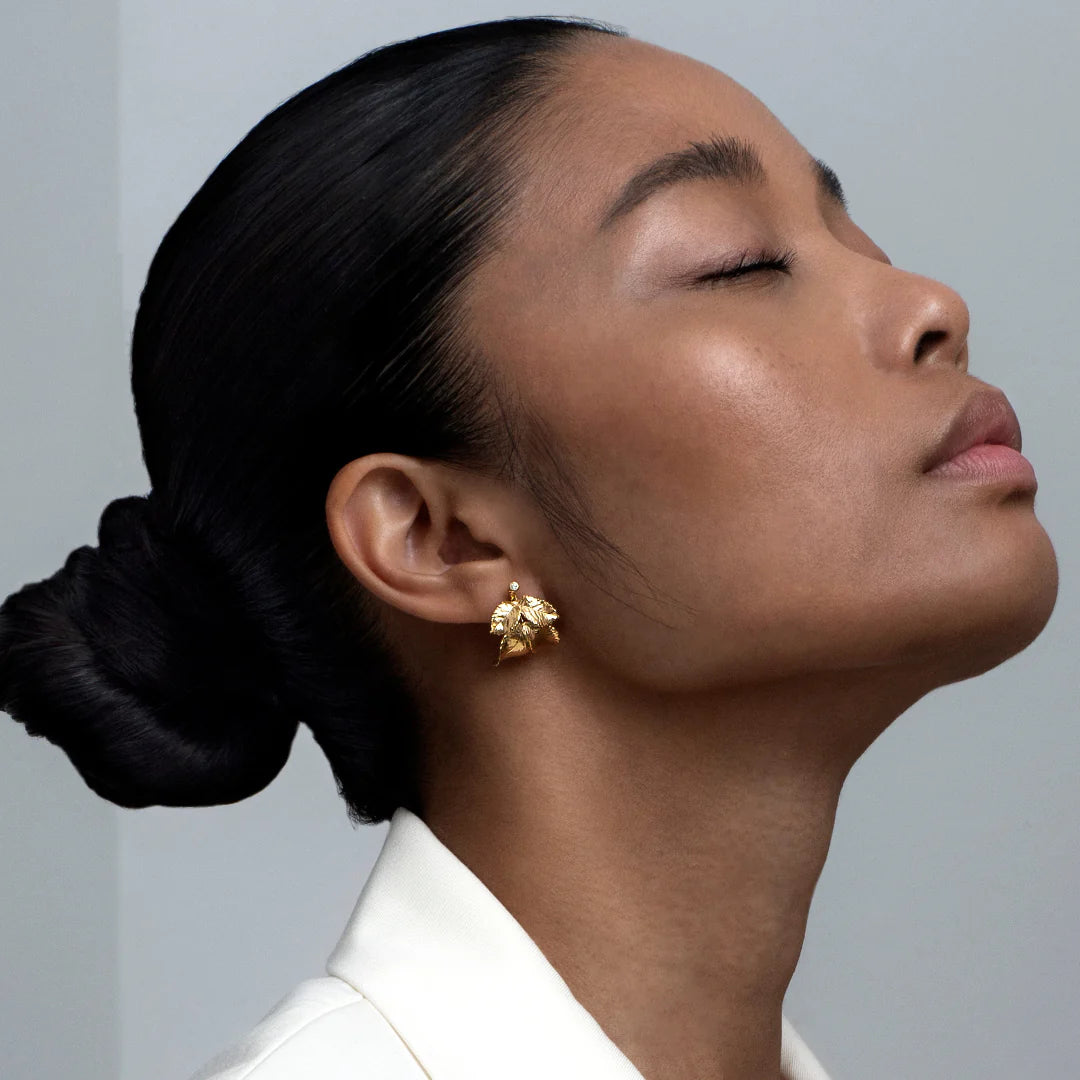 Øreringene er håndlavet i 100 % genanvendt sterlingsølv og belagt med 22 karat bæredygtigt, genanvendt guld – et smykke, hvor ansvarligt håndværk og tidløs æstetik går hånd i hånd.