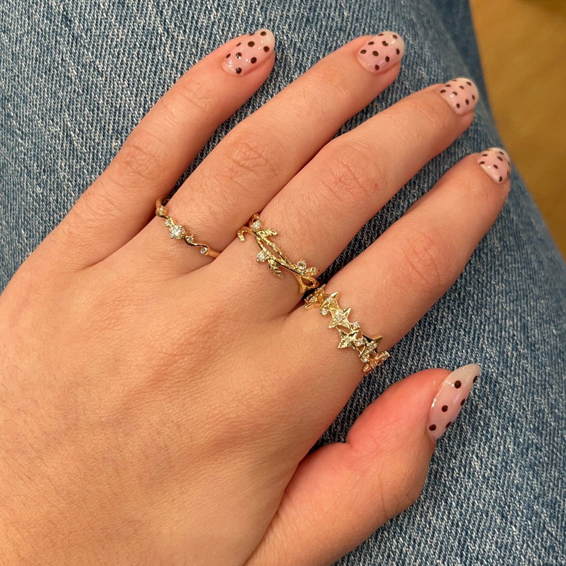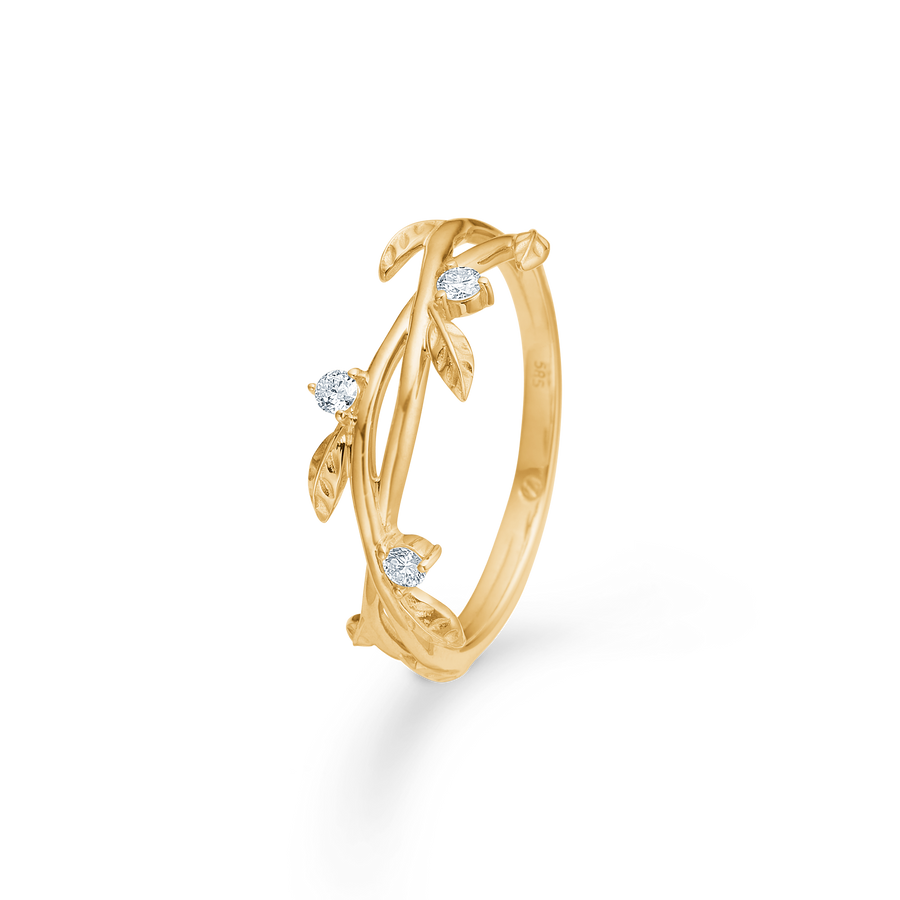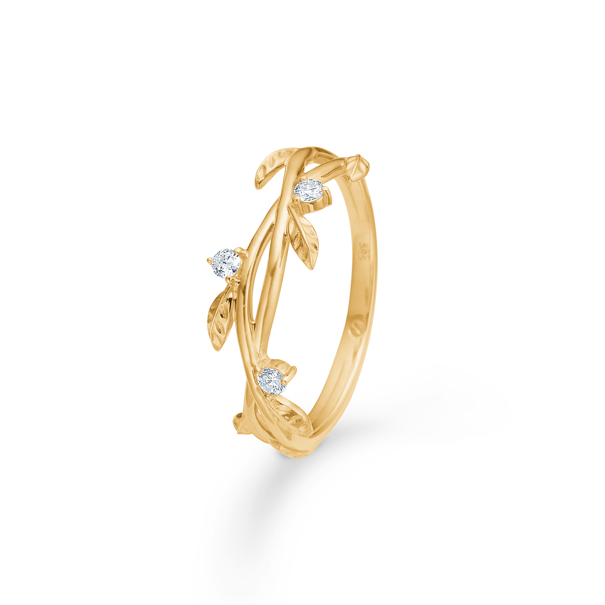 Aura ringen fra Mads Z er et elegant eksempel på moderne dansk smykkedesign. Den er skabt i 14 karat guld og prydet med en brillantsleben diamant på 0,10 ct. i Wesselton SI-kvalitet, smukt placeret i en klassisk grabbefatning. Designet er inspireret af naturens organiske former, hvor de bløde kurver minder om grene og blade, der slynger sig naturligt. Resultatet er en guldring med diamant, der kombinerer tidløs skønhed, luksuriøst håndværk og en personlig fortælling, du kan bære hver dag.