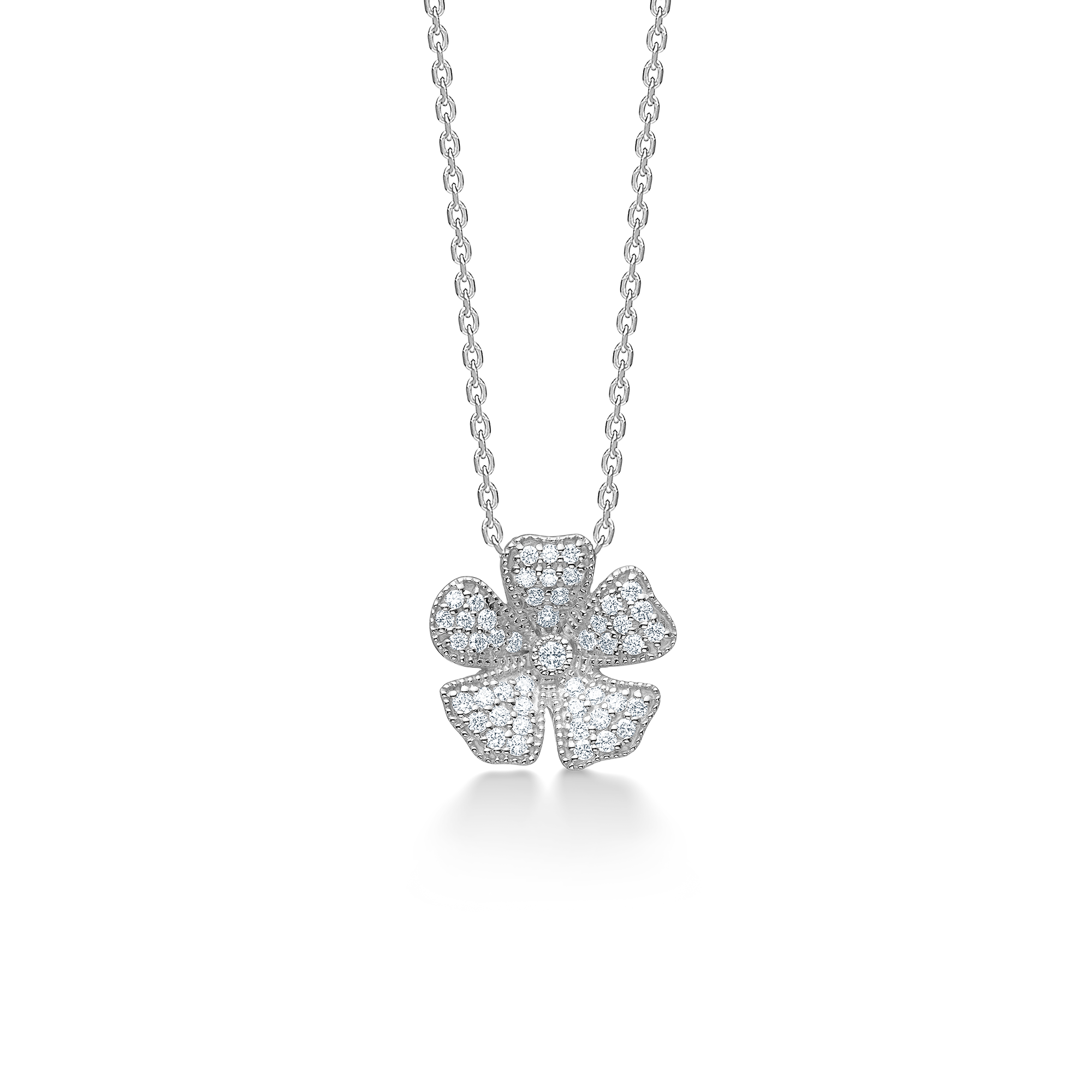 Mads Z Fleur halskæde i sterlingsølv med pavébesat blomst