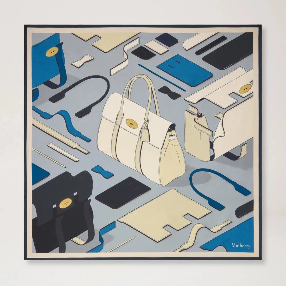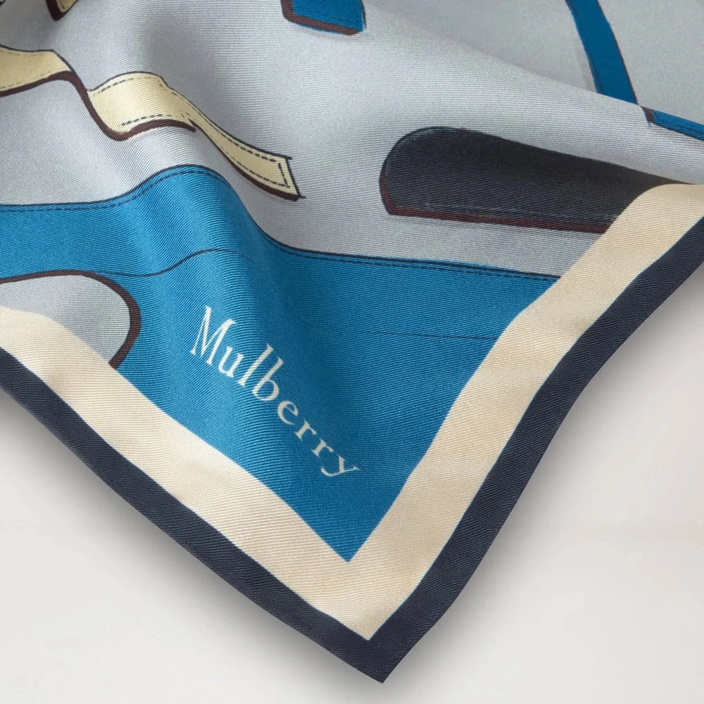 Det kvadratiske design giver mange anvendelsesmuligheder – brug det elegant om halsen, i håret, eller som et sofistikeret touch på din yndlingstaske fra Mulberry. Den lysegrå nuance giver et tidløst og raffineret udtryk, inspireret af Mulberrys ikoniske Bayswater Workshop-univers.