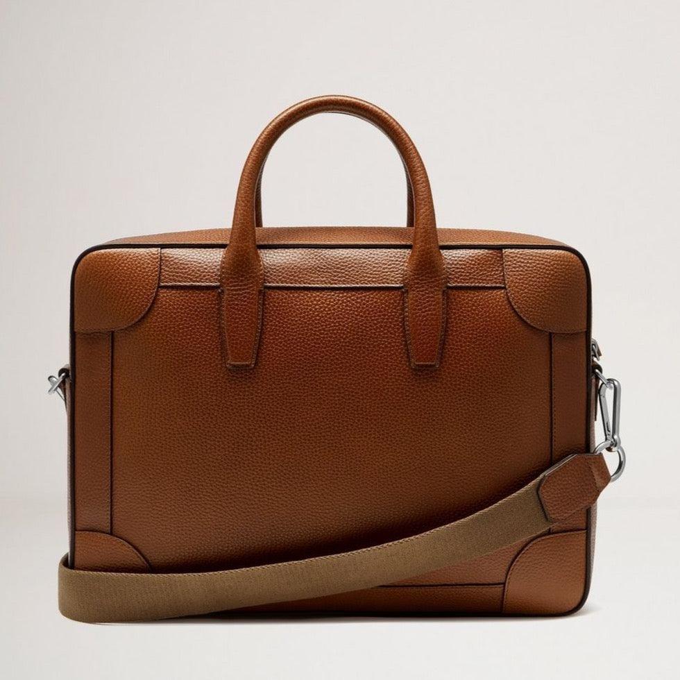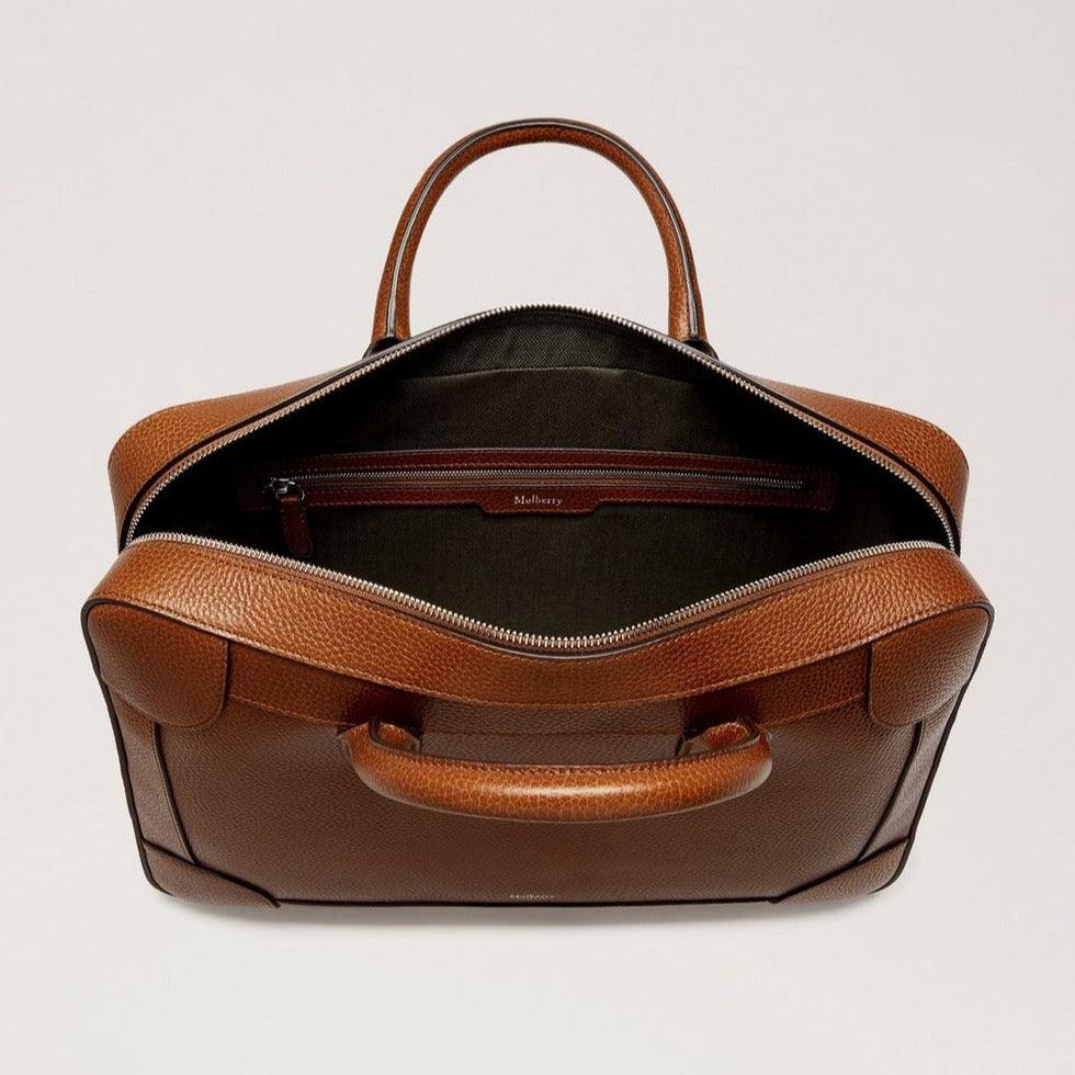 Belgrave Single Document Holder fra Mulberry er den ultimative computer/dokument taske til dig, som gerne vil bevare det stilrene look. Den har en aftagelig skulderstrop i lækker canvas kvalitet, som kan tilpasses i længden og bruges som crossover. Det brune læder er mikset med smukke sølv farvet detaljer og den indvendige lining er i Canvas i en flot kontrastfarve. Indvendig har den et stort rum og en lynlås lomme. Den fantastiske og ekstraordinære læderkvalitet gør at den kun bliver flottere gennem årene.