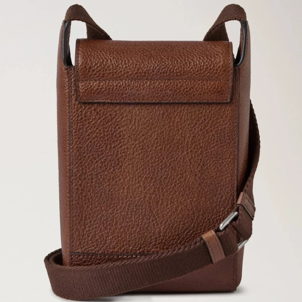 Mulberry Chiltern Phone Pouch i Oak Natural Vegetable Tanned er en moderne klassiker, der kombinerer det ikoniske flap- og spænde-design fra vores tidløse taske-serie med et praktisk og stilfuldt crossbody design. Denne læderphone pouch giver dig mulighed for nemt at opbevare din telefon på farten, samtidig med at du bærer den med elegance.