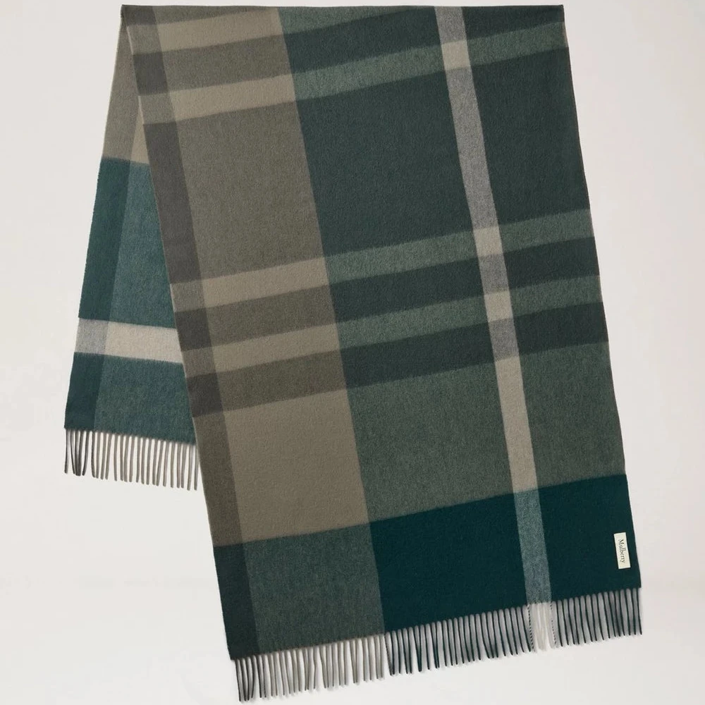 Mulberry Large Check Merino Wool Scarf – Mulberry Green & Juniper Green / Stort Ternet Uldtørklæde:
