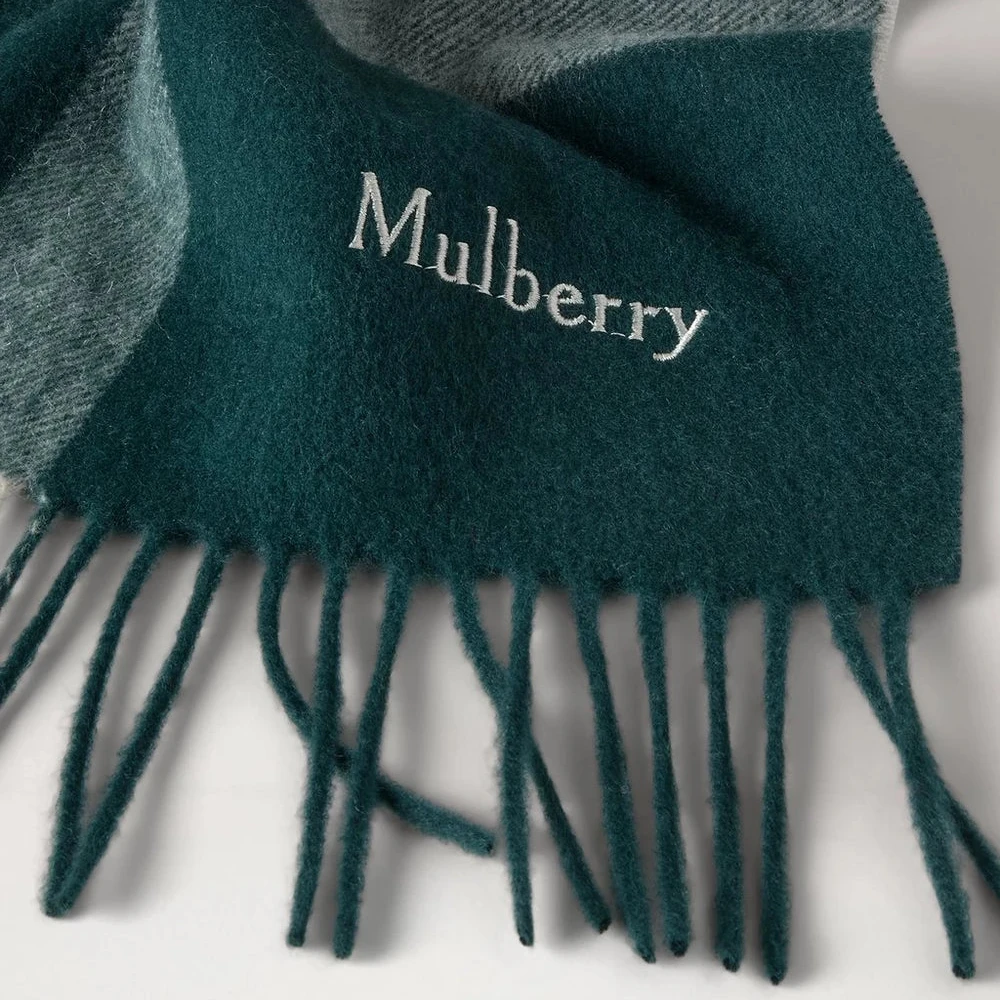 Det er produceret i Storbritannien og prydet med et diskret broderet Mulberry-logo, som fuldender det elegante design. Med sin generøse størrelse kan tørklædet bæres både løst over skuldrene eller vikles om halsen for et luksuriøst, afslappet look.
