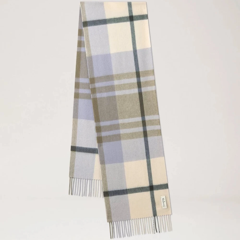 Mulberry Small Check Merino Wool Scarf – Eggshell & Olive / Klassisk Ternet Uldtørklæde: