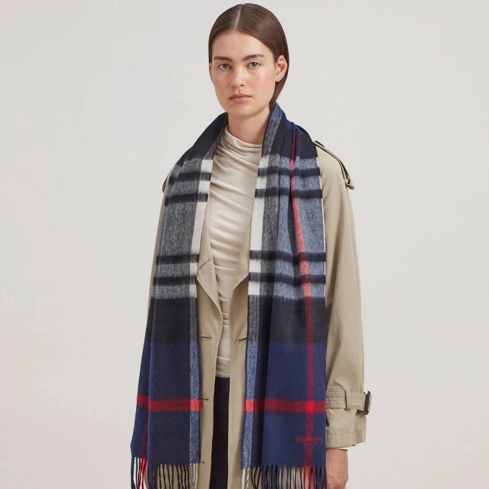Mulberry Small Check Merino Wool Scarf Night Sky-Lancaster Red