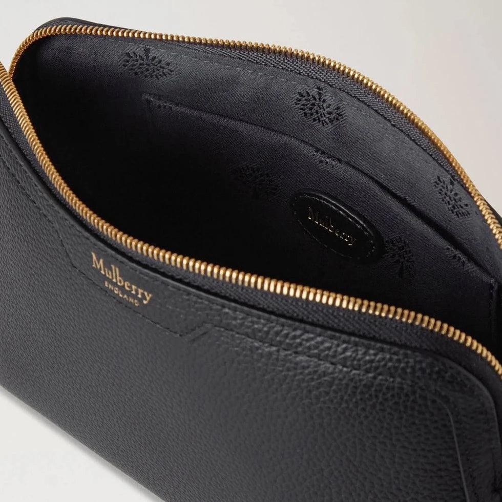 Den lille kosmetikpung i farven sort fra Mulberry er det ultimative udtryk for både stil og funktionalitet, skabt til at organisere dine vigtigste kosmetiske produkter. Uanset om det er til daglig brug eller rejsebrug, er denne kompakte toilettaske uundværlig. Den er udstyret med en sikker lynlåslukning med lædertræk, en praktisk indvendig slip lomme og elegant foring med Mulberry Tree Logo stof.