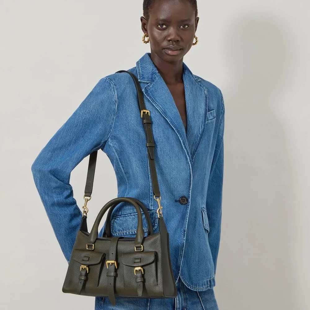Fremstillet i det eksklusive Natural Vegetable Tanned (NVT) læder i farven Juniper Green, får tasken et naturligt og levende udtryk, som kun bliver smukkere med tiden. Læderet er kendt for at udvikle en unik patina, der vidner om kvalitet og ægte håndværk. De messingfarvede spænder, to frontlommer med magnetlukning og den justerbare, aftagelige rem giver tasken et både sofistikeret og praktisk design, perfekt til hverdagsbrug.