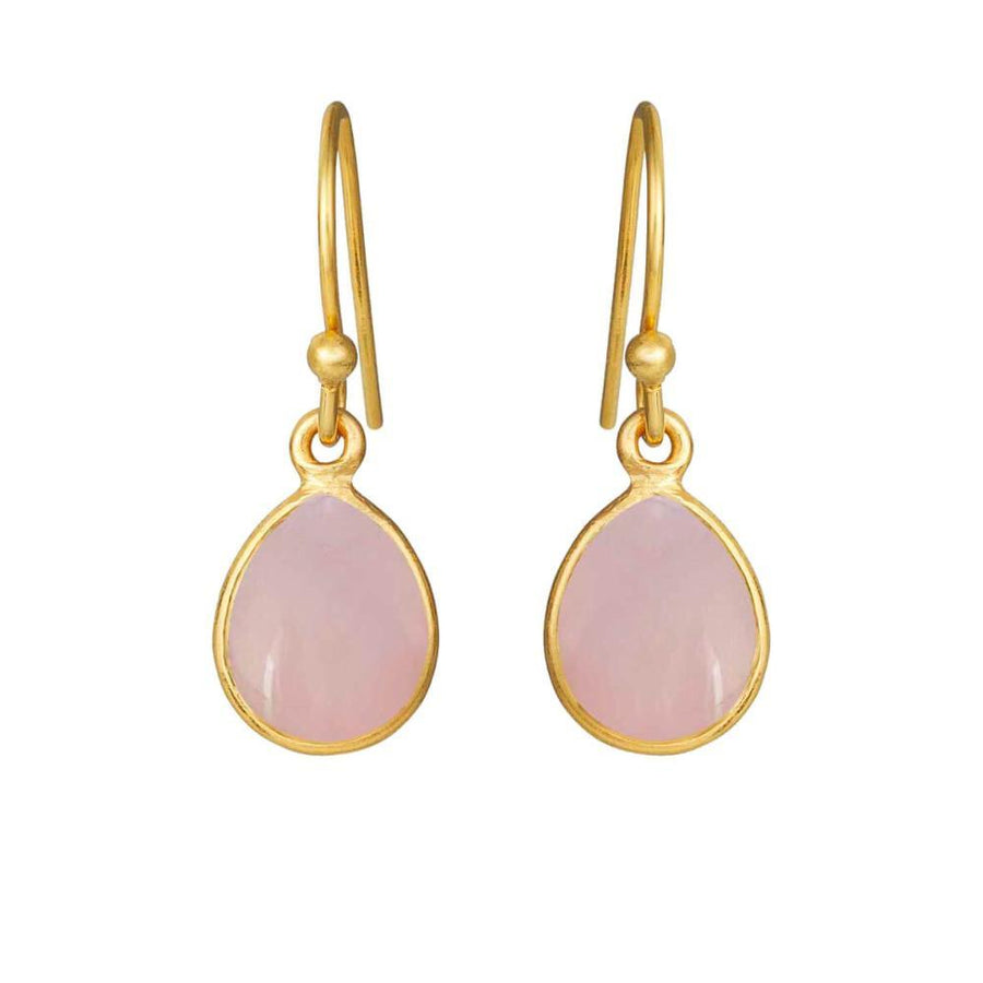 Disse smukke bøjleøreringe fra Susanne Friis Bjørner er udført i forgyldt sølv og dekoreret med en dråbeformet cabochonsleben lyserød krystal på 8×10 mm. Det feminine design og den sarte rosa nuance gør dem ideelle til at tilføre et strejf af elegance til både hverdags- og festlooks.