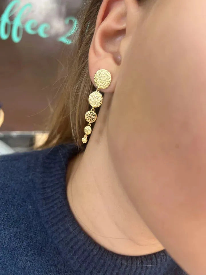 Wioga Milena øreringene forener moderne elegance med et strejf af glamour. De runde vedhæng giver et sofistikeret udtryk og bevæger sig smukt, når du har dem på.